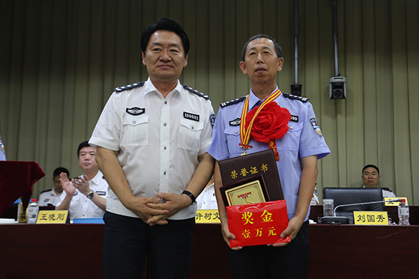 值得一提的是,在沈陽市公安局召開的全市公安工作推進會上,沈陽市副市長、市公安局長劉國秀代潘利國市長,為堅守基層一線30年的皇姑分局民警楊建夫和身患癌癥仍帶病堅持工作的蘇家屯分局民警李春和頒發了“市長特別獎”,并分別頒發獎金一萬元。楊建夫、李春和兩名同志能夠獲此殊榮,體現了沈陽公安機關提出的“讓先進引領、讓典型風光、讓英雄無悔,讓吃苦的人吃香、實干的人實惠、有為的人有位”的用人導向。