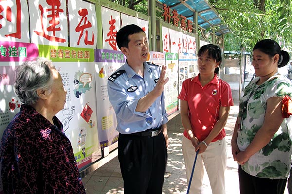 日前,沈陽市公安局沈河分局民警們帶著《禁毒教育掛圖》、禁毒宣傳資料、禁毒法律書籍等到轄區和社區工作人員一起進行禁毒宣傳活動,向社區群眾介紹毒品的危害、毒品的分類、吸毒的后果等,受到了群眾的好評。