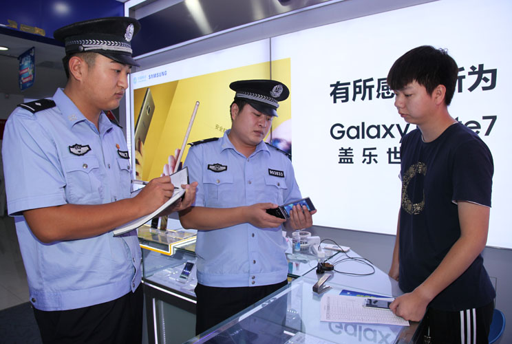打擊“盜搶騙”行動開展以來,為加強對重點行業場所的有效管控,大洼縣公安局刑偵大隊深入了解治安情況,針對轄區手機市場、中小旅館等重點行業場所,組織警力采取有力措施進行了專項整治。圖為民警正在檢查重點行業場所。