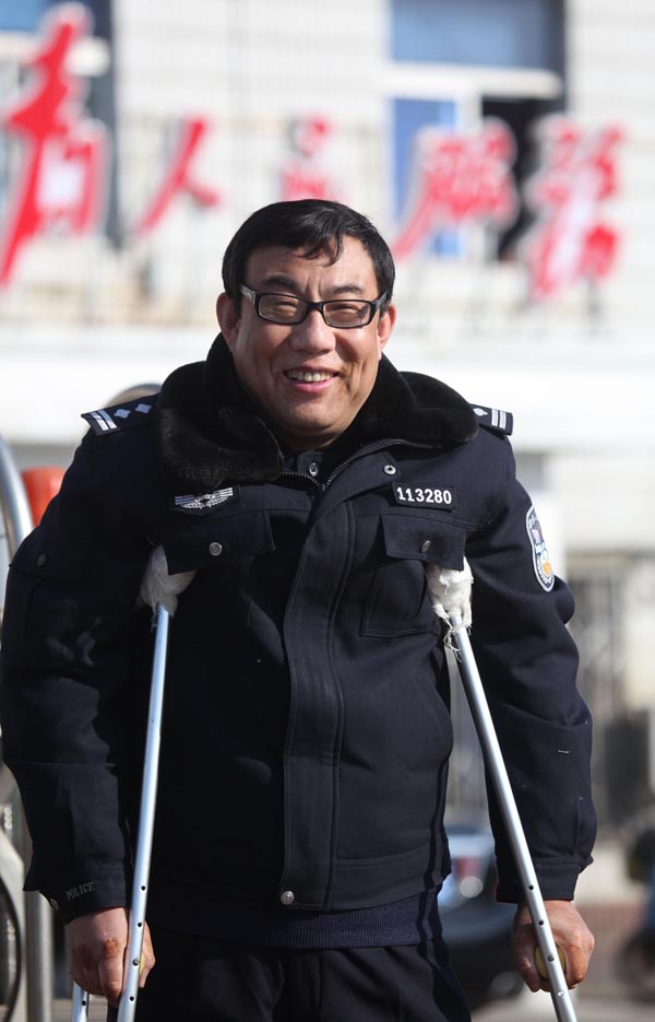 “老黃”就這樣一種人,憨厚、樸實,對工作兢兢業業。他拄著雙拐為群眾上門送補辦的戶口簿,群眾和所里領導心疼地對他說:“‘老黃’,別太拼命,不行回家休養兩天。”他卻憨笑著說:“這活兒忙不過來,再說我在家也待不住啊!”