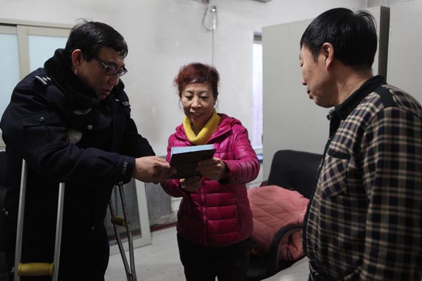 “老黃”拖著病腿,拄著拐為群眾上門送補辦的戶口簿