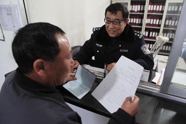 “老黃”在戶口專勤窗口站著熱情為群眾服務