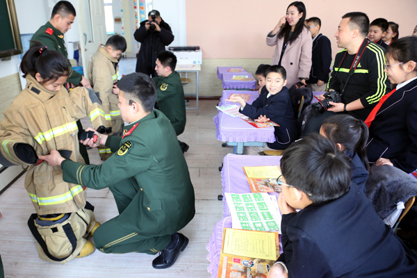 日前,沈陽(yáng)市公安消防支隊(duì)300多名官兵走進(jìn)各個(gè)轄區(qū)中小學(xué)校及幼兒園,為師生送上了精心準(zhǔn)備的消防安全第一課。這次在全市范圍內(nèi)同時(shí)啟動(dòng)“消防第一課”的活動(dòng),和以往相比,宣傳教育手段更具有針對(duì)性和實(shí)用性,把消防知識(shí)變成寓教于樂(lè)的內(nèi)容傳授給孩子們,通過(guò)講課、學(xué)生提問(wèn)、實(shí)驗(yàn)、互動(dòng)等各種環(huán)節(jié),激發(fā)了學(xué)生們的興趣和熱情。有的學(xué)校還開(kāi)展了別開(kāi)生面的“消防軍訓(xùn)”活動(dòng)。